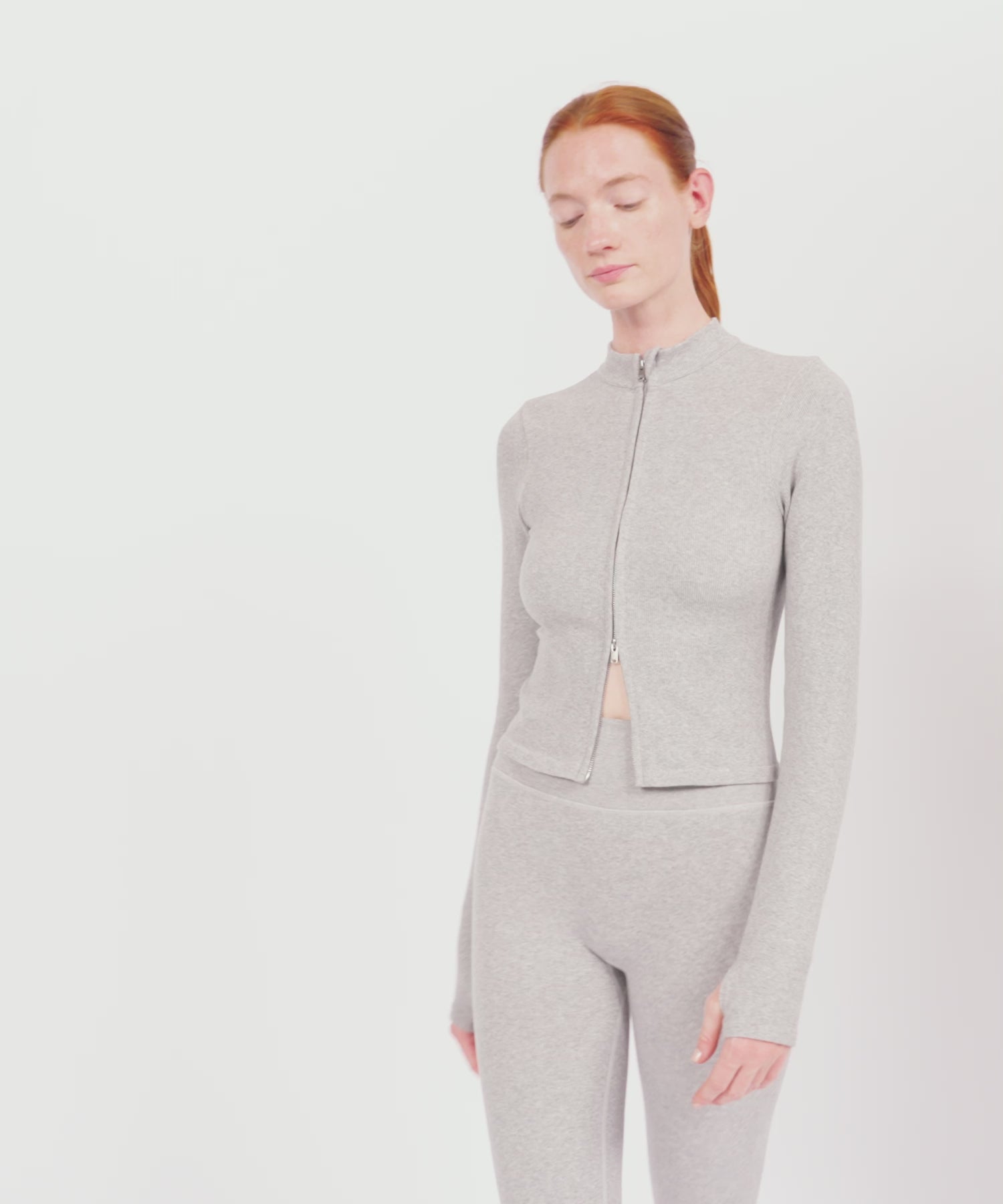 ז'קט בגזרת קרופ עם צווארון גבוה ורוכסן מלא. פריט ורסטילי במיוחד למראות שכבות מגוונים – אידיאלי לשעות הפנאי בבית, וגם ליציאה החוצה. הז'קט מגיע בגזרה צמודה וחובקת גוף, לנוחות מרבית והתאמה מדויקת. אם את מעוניינת במראה אוברסייז משוחרר מעט – מומלץ לבחור מידה אחת מעל המידה הרגילה שלך. הז'קט מוצע בגוון אפור מלאנג׳, בהשראת הרעננות של ערפילי הבוקר המוקדמים.