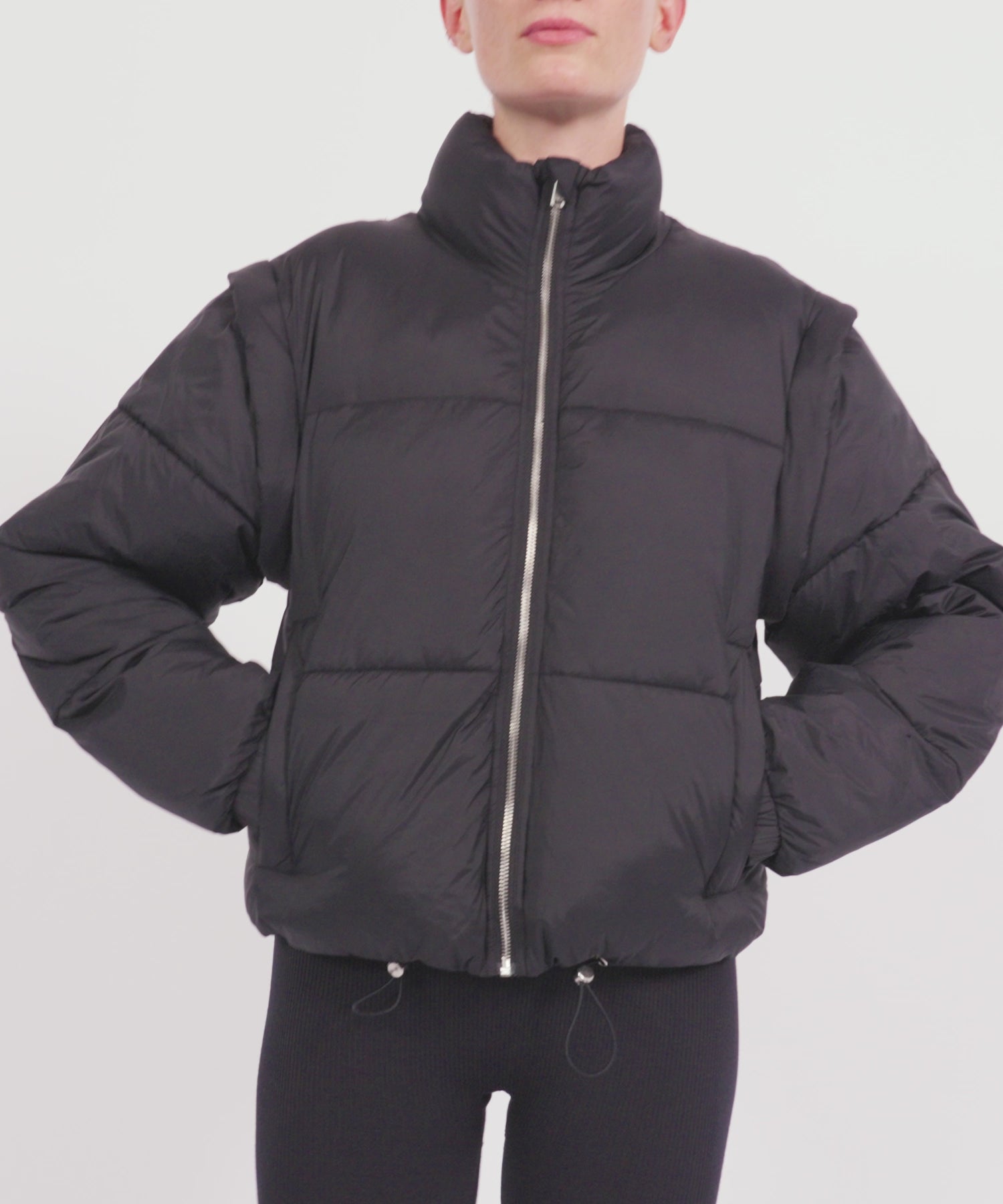 מעיל פאפר ורסטילי עם שרוולים ניתנים להסרה, שמציע שני מראות בפריט אחד – מעיל מלא או וסט קליל. הוא מספק שכבת חימום נעימה ומשלב באופן מושלם בין פונקציונליות לשיק יומיומי ונינוח. הפריט מוצע בגוון שחור עמוק קלאסי ושימושי.